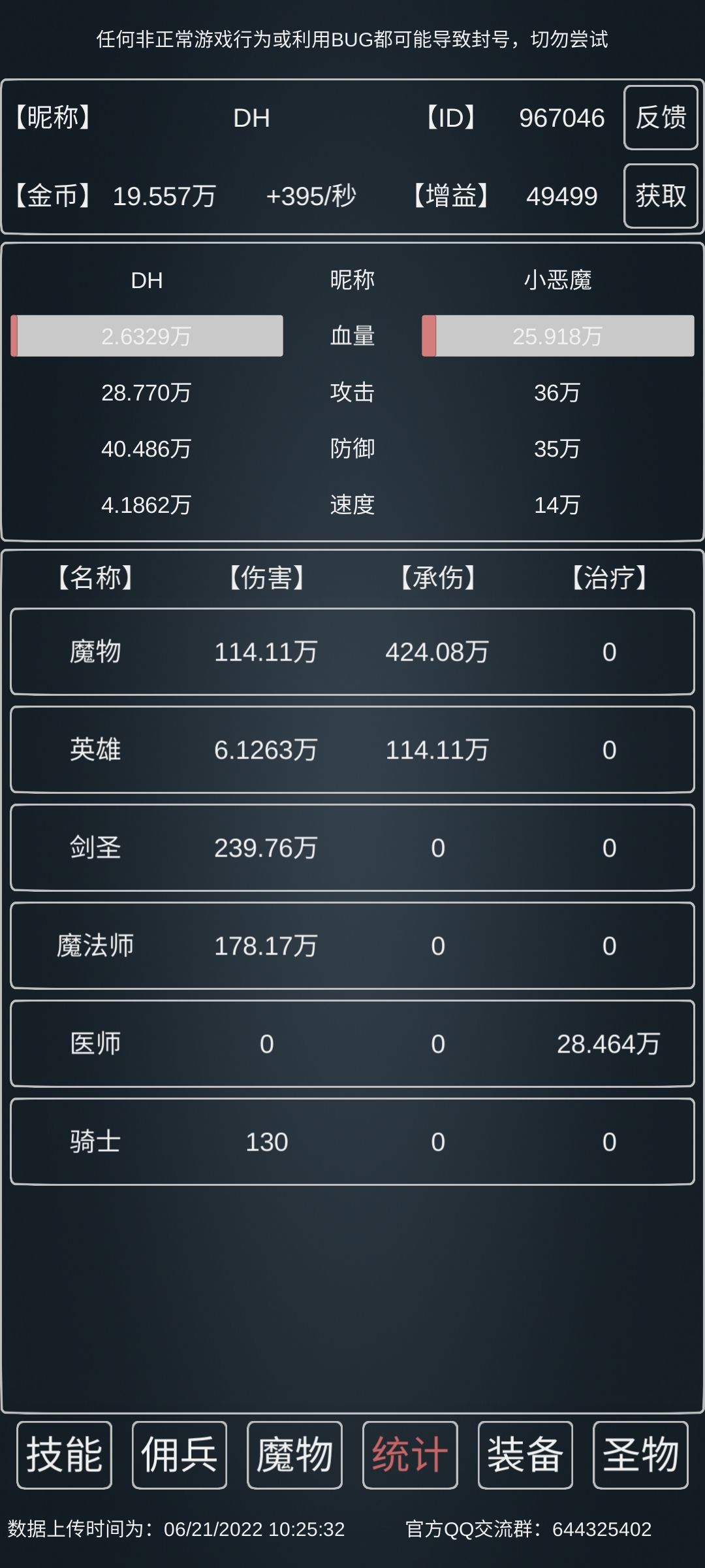 开始正文,017挂完勇者2-3h左右可以1s过暗夜,暗夜打完9-10h就可以过我们的小恶魔了,这段时间全程挂防御到40w左右即可,非常简单。
