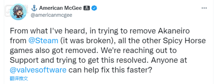 就在大家猜测原因时,制作人American McGee今天在推特上回应了这件事,称游戏被下架与发行商无关,只是工作室因为一时疏忽导致的乌龙事件。