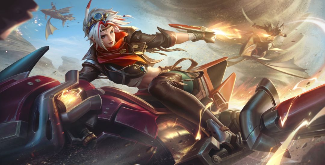 戈娅驾驶沙舟作战,可以在移动中攻击,轻点一次普攻会用手弩快速连续射击3次,并使沙舟刹车进入漂移状态,连续射击6次后使用普攻会追加一次强力射击造成高额伤害,同时沙舟会加速起步。