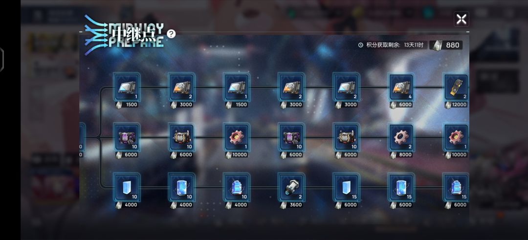 体力五分钟回复一点,一天可以回复288点体力,也就是2880积分,演习一天十次,也就是60积分(2940),总力挑战每天一次,300积分(3240),活动还有十三天,可以42120,还差62930积分,也就是6293体力,每瓶备用能源60,要大约105瓶……目标有点遥远