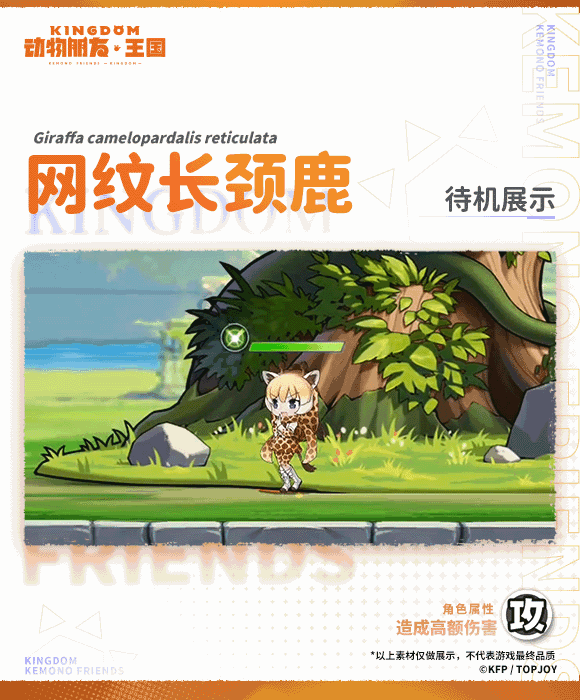 在之前为大家介绍过网纹长颈鹿的朋友情报,今天就来看看网纹长颈鹿在「王国」中的实装展示吧。网纹长颈鹿在面对爱吃的鲜花时,会大快朵颐。在作战时,这些花朵也会变成战胜天蓝怪的法宝哟~