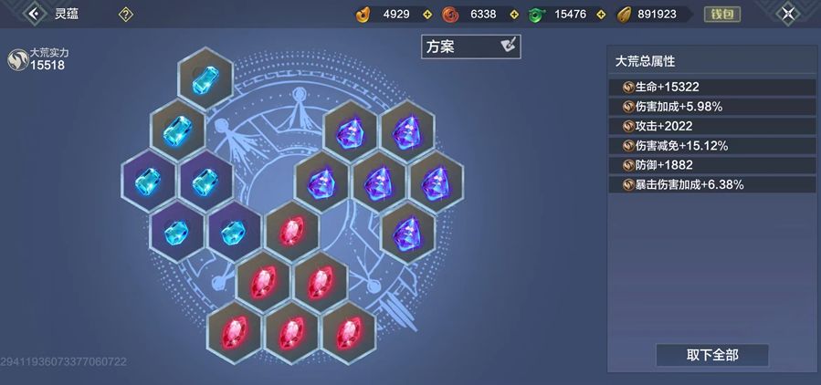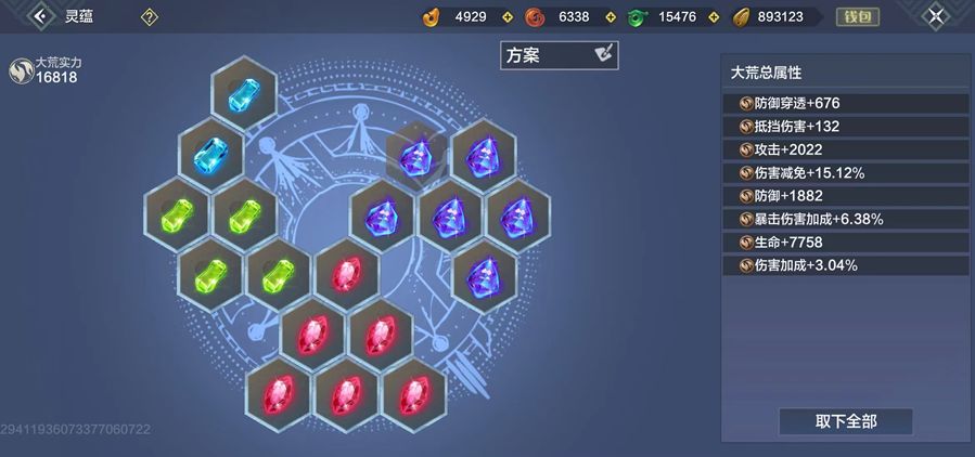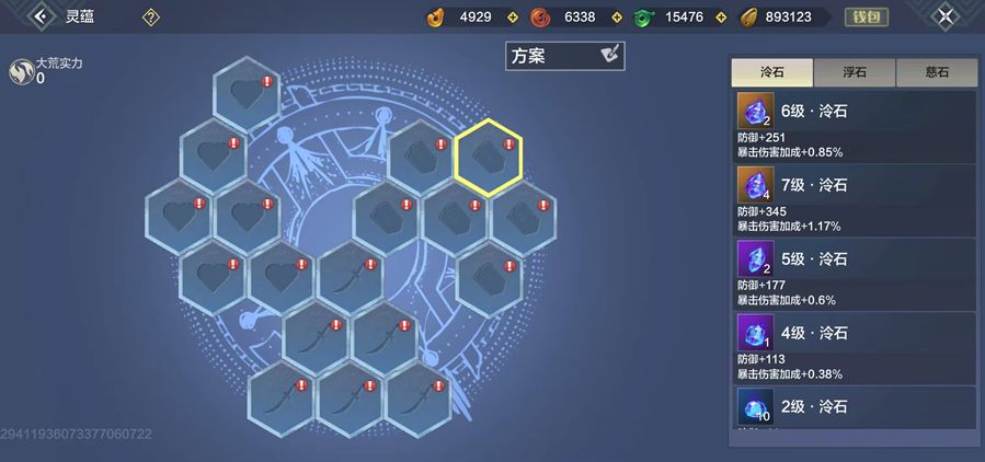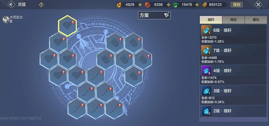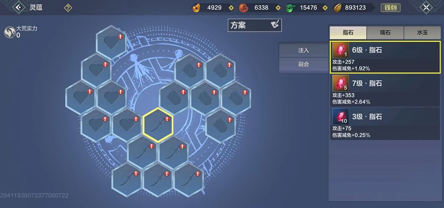 除了简单的合成之外,我们还要明白灵蕴并不是等级越高越好,不能无脑的直接合成最高级灵蕴,以脂石为例,3个6级脂石增加3*257=771点攻击,而三个6级脂石合成一个7级脂石只增加353点攻击,在资源有限的情况下先不着急合成高级的,可以先用低价的把18个灵蕴槽填满,达到用最少的资源获取最大的利益。