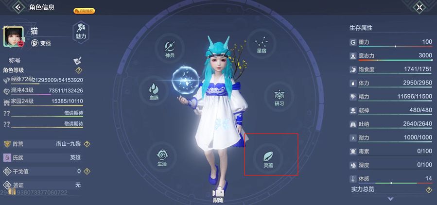 从状态界面进入灵蕴