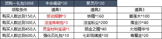 【活动简介】活动期间内,道友们可购买活动界面的团购商品。当购买团购商品的人数达到一定数量时,购买过该商品的道友们可以额外领取相应奖励。