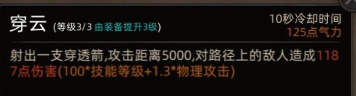 350的攻击加成,关键是3级的穿云,5000超远距离的穿透箭,而且cd只有10秒,玩弓神器之一。