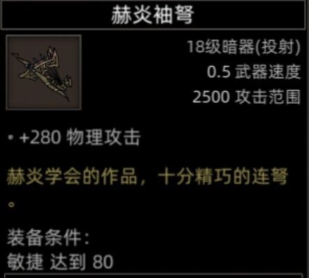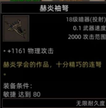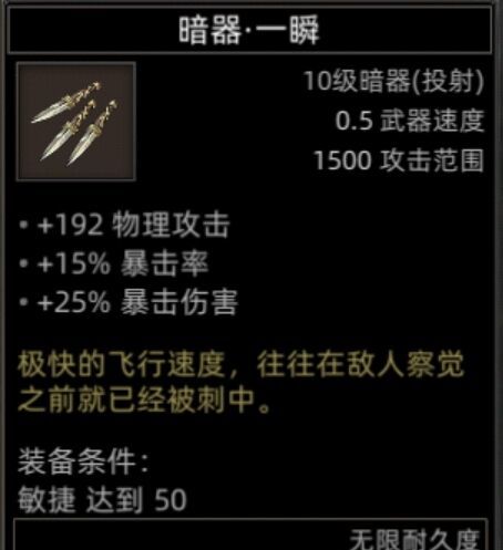 还算可以的暗器,好像有个NPC有致命骗术被动,可以招募进队,这武器就给有骗术被动的队友,那就20%概率,还算可以。
