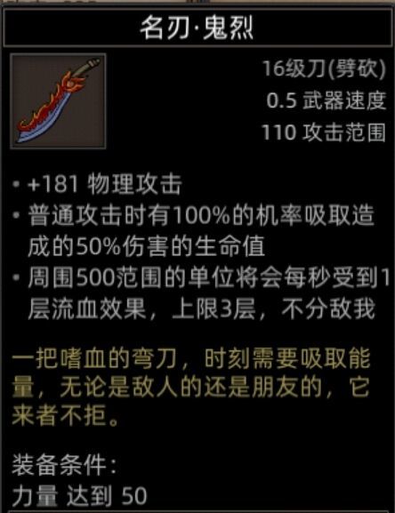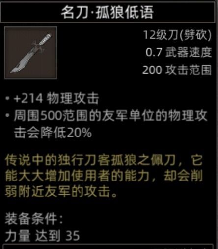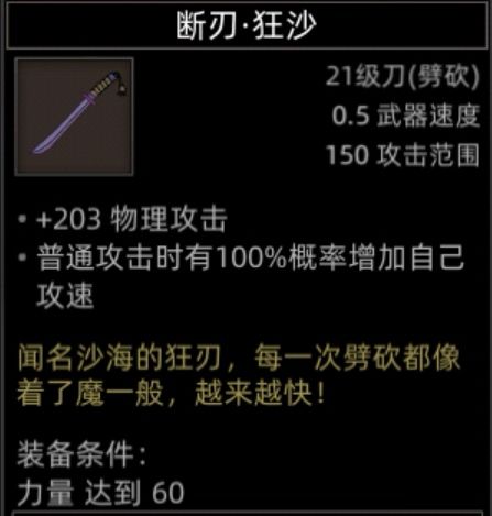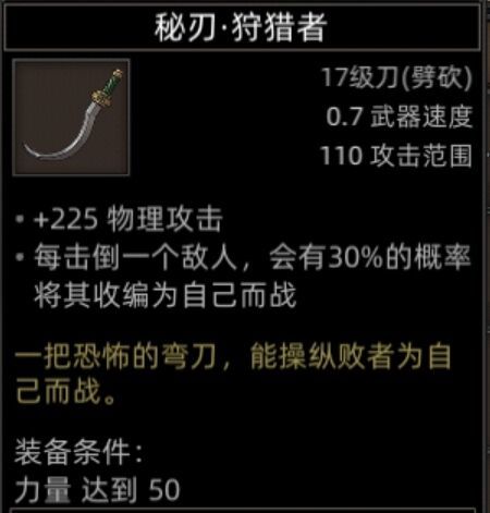 死亡如风,常伴吾身,带这把刀就不能有队友,不然敌人都还没死两个,队友先死完了,而且这把刀只有蛮力战士和野性之魂能带,玩其他带着就是找死。