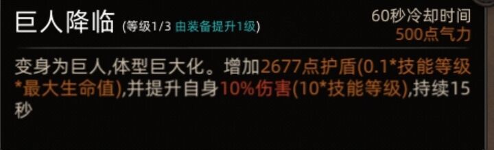 直接血量翻一倍,但是没有减伤,而且巨人降临的CD过长,可以给肉盾过度用用。