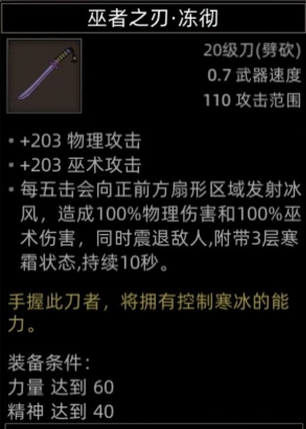 非常好的刀,物理和巫术加成都不低,而且专属词条有伤害也有控制。