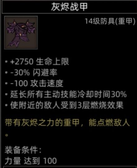 非常好的防具,给拥有免疫燃烧的肉盾穿,超高的生命值加成,两个控制词条,防具中的极品。
