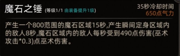 锤中非常好的存在,每5次攻击的250%的巫术伤害,8秒的800范围控制。