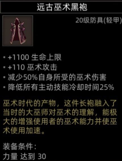 防具中数一数二的存在,50%的巫术减伤,25%的CD减少,玩巫师穿上就是行走的巫术炮台。