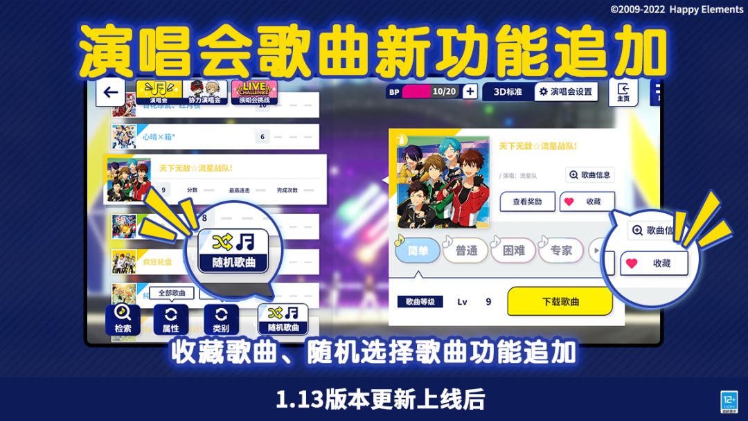 1.13版本更新后,游戏内演唱会将追加新功能:收藏歌曲及随机歌曲功能