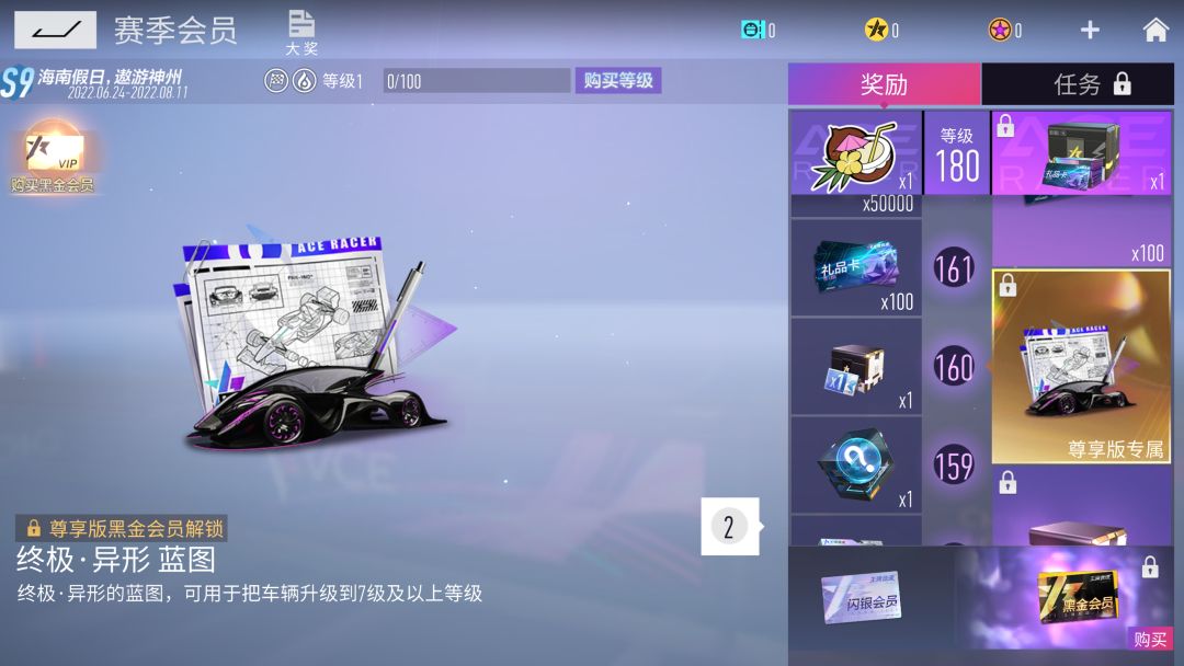 赛车蓝图不够?不用担心,现在购买黑金会员尊享版的赛车手将会在160会员等级再额外解锁专属车辆蓝图!(原160等级的赛车零件奖励将会在164等级一并解锁。)