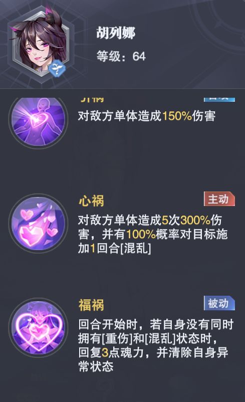 首先是第一天的boss“惑心之魔”,此boss的难点在于主动技能【心惑】和被动技能【福祸】,特别是这个【福祸】的清楚debuff与回复3点魂力能力是极为强悍的,包括波赛西的【海神诅咒】都无法限制她,因此如何能够给boss同时施加【混乱】与【重伤】来避免此被动才是击败惑之心魔的核心思路,而胡列娜则刚好具备这样的能力,如果外加一个武魂真身则会更加顺畅。