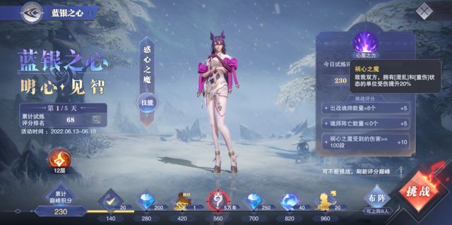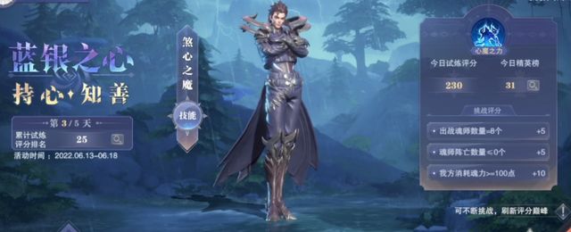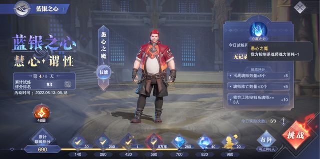 然后是第三天的煞心之魔,此boss打起来的难度倒是不高,其技能的威胁对比前两天的boss来讲也有所下降,不过他最大的难点是在于boss的4个小弟在全部阵亡后会立刻复活且立刻行动,这就会给我们的行动次序造成非常大的压力,另外这关还有一个需要消耗100点魂力的挑战目标,所以带上部分回能的魂师也是让我们能够快速消耗100点魂力的捷径之一。