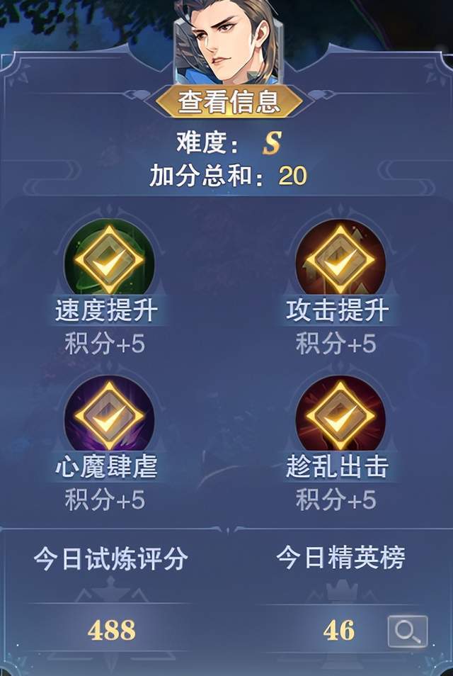 尘心的这个外传副本和过去的外传副本还是大体一致的,其中的“剑神试炼”分支中共计有5个boss,每个boss都具有一定的血量,比较的便是谁先打完boss的血量,所获积分最高或积分相同时的所消耗回合数最少者为前列。另外每天的boss也有4个挑战积分可选,每天的合计挑战积分均为20分,其中会对boss的攻击力、速度、特殊效果等有所增强,因此大家在打的时候也可以根据自身的实力来选择对应的效果,一般来说维一建议全部选上。