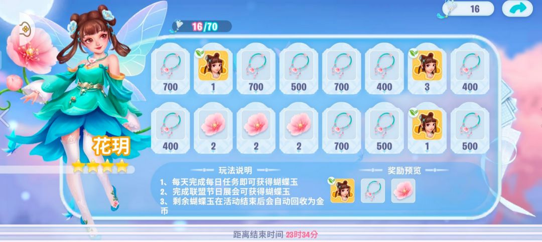 翻牌奖励有花玥碎片,有项链(兑换花玥碎片或者胶水等其他道具),还有花朵(抽卡道具)