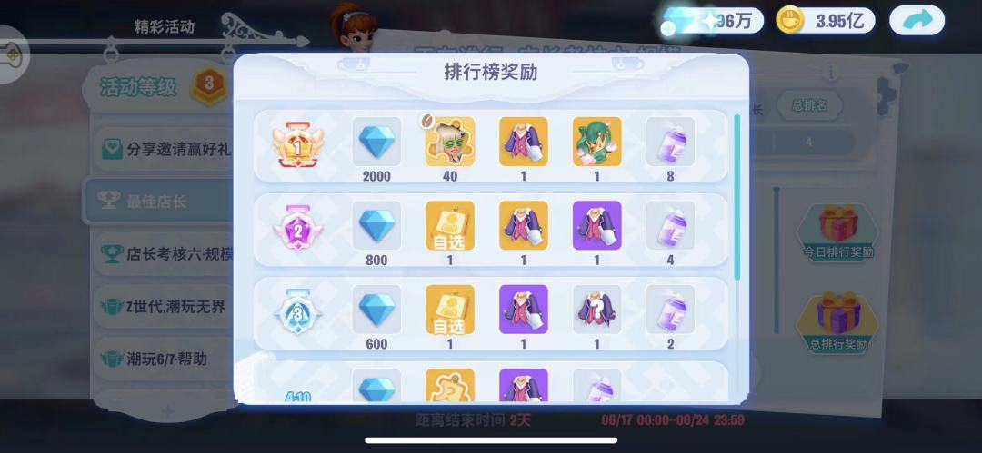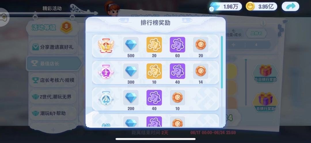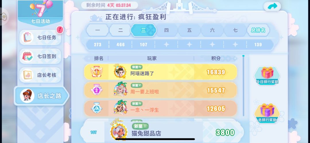 这活动和新区七天店长之路类似,搭配着店长考核活动一起进行。每天也有分榜和总榜,但是每天活动和排行版的奖励与新手时期有区别。