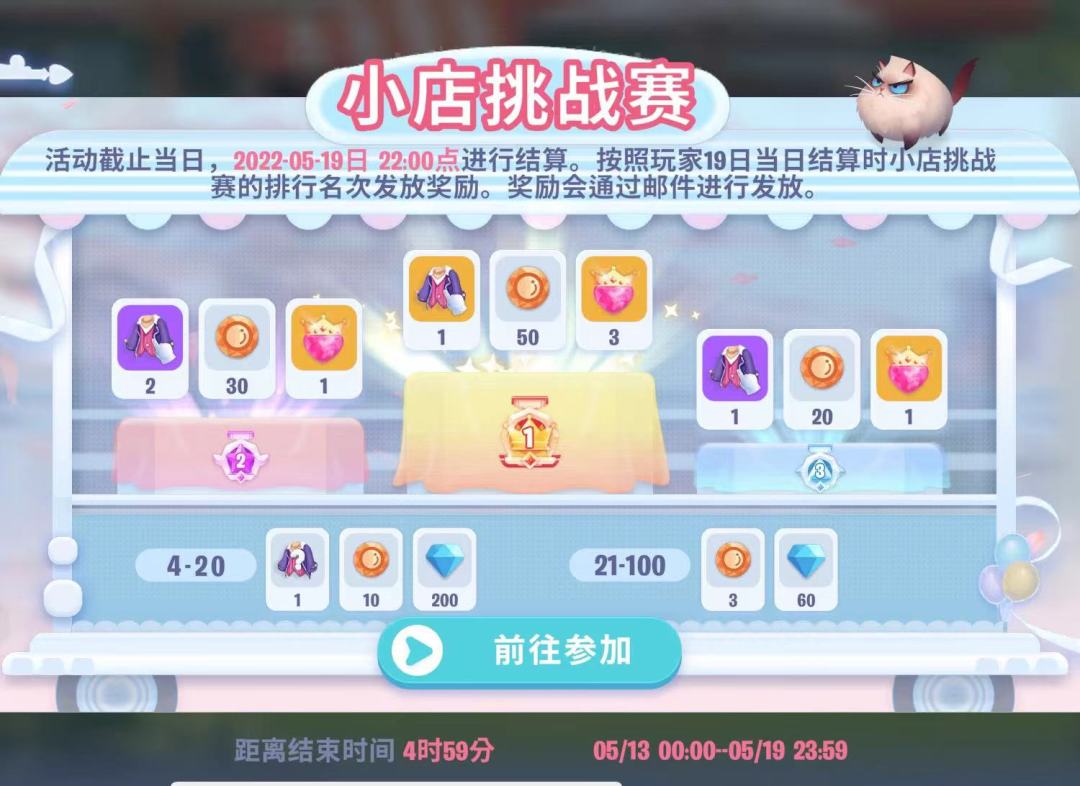 小店挑战赛一般也是7天,但是是在第7天晚上22点结算(不是每天晚上结算哈),以结算时小店挑战赛排名发放奖励,所以这一天晚上也是小店挑战赛偷塔高峰期。