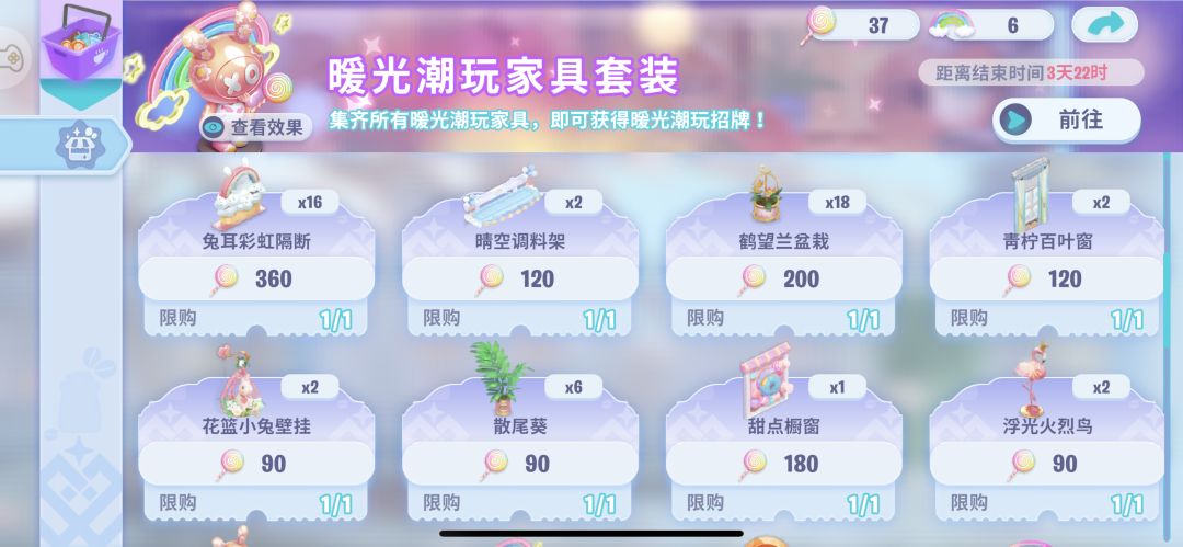 每次新主题家具推新活动是一次性拿完全套家具的最好机会,一旦错过等返场就比较难,目前还没有整套活动家具翻场的情况,都是在后续活动中零碎几件家具返场。