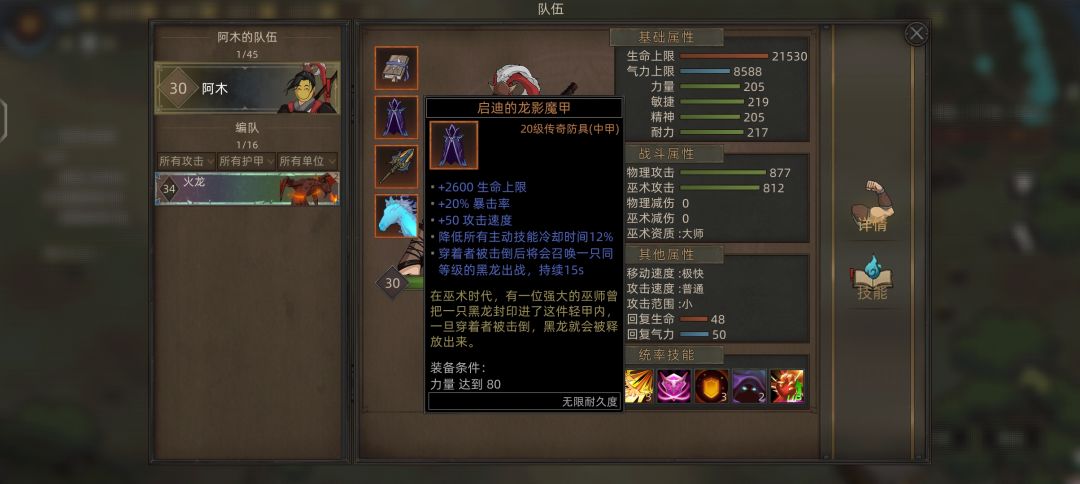 两者任意选一即可,灰金法袍用蓝条阻止暴击伤害,分身不适当技能,蓝条无用,也可防止本体猝死,龙影魔甲,分身挂了召唤黑龙
