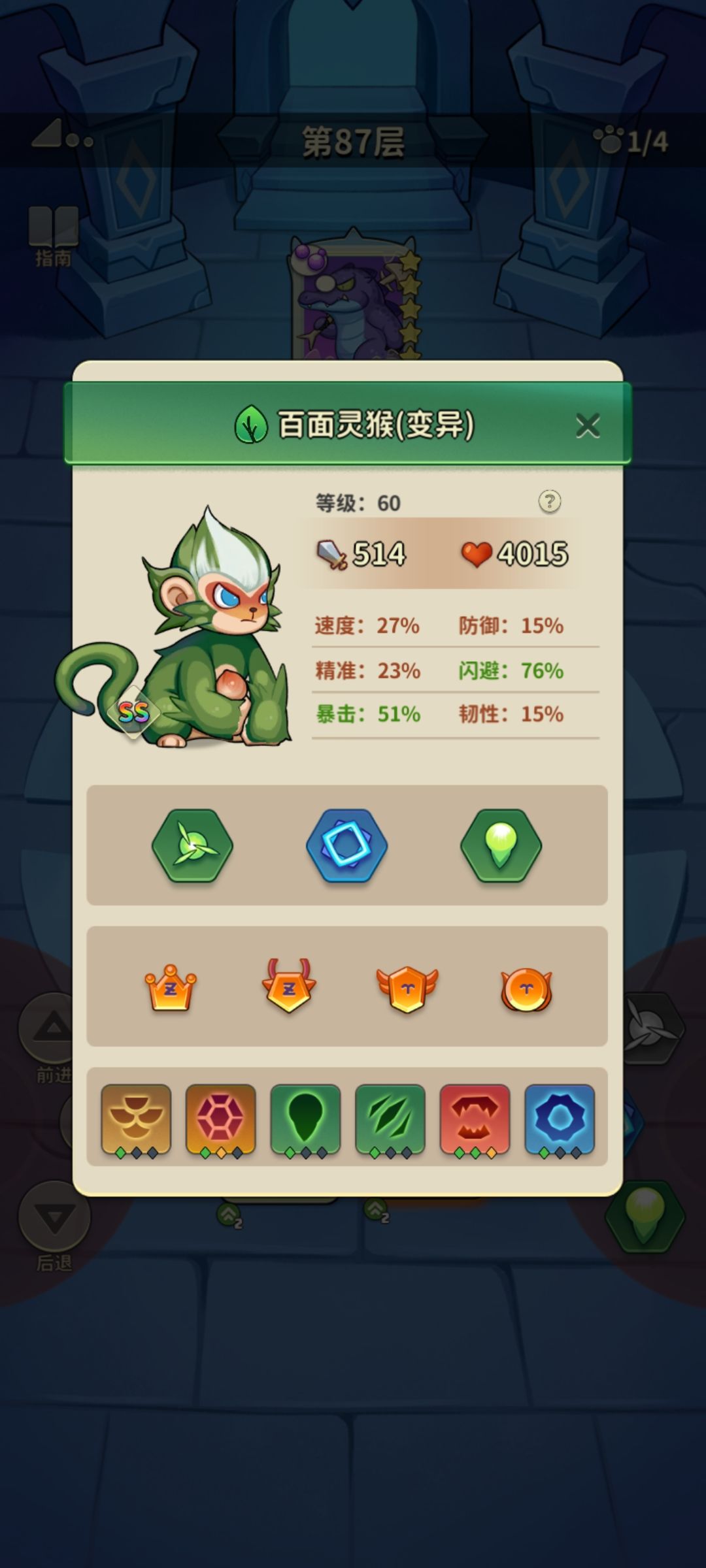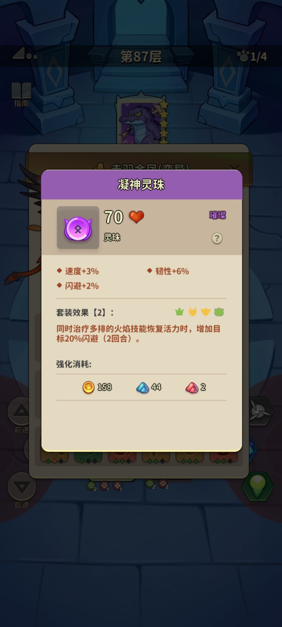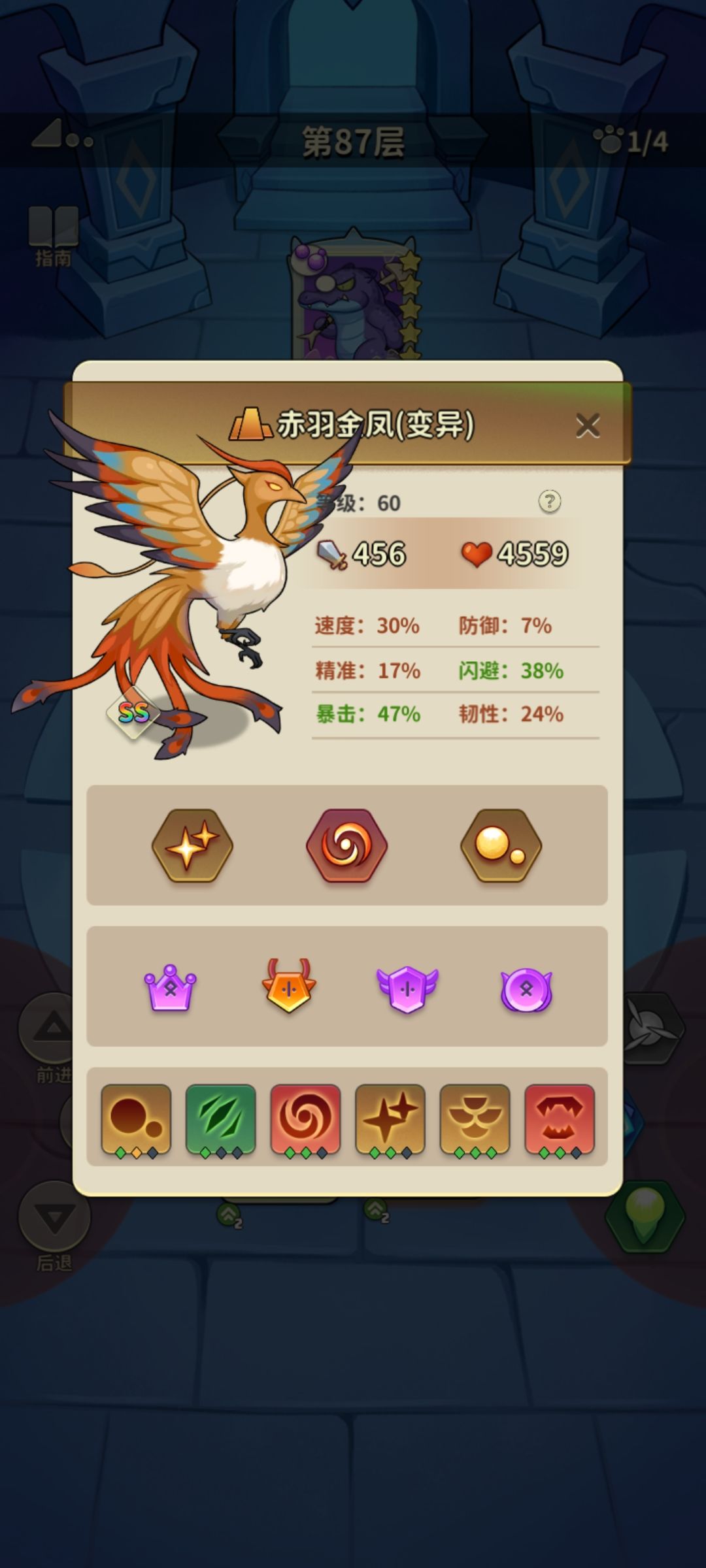 金凤带了下图两个加闪避的装备,2技能按理说可以加40%闪避。