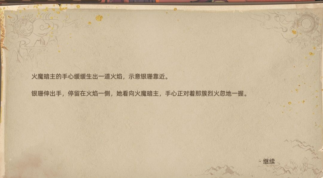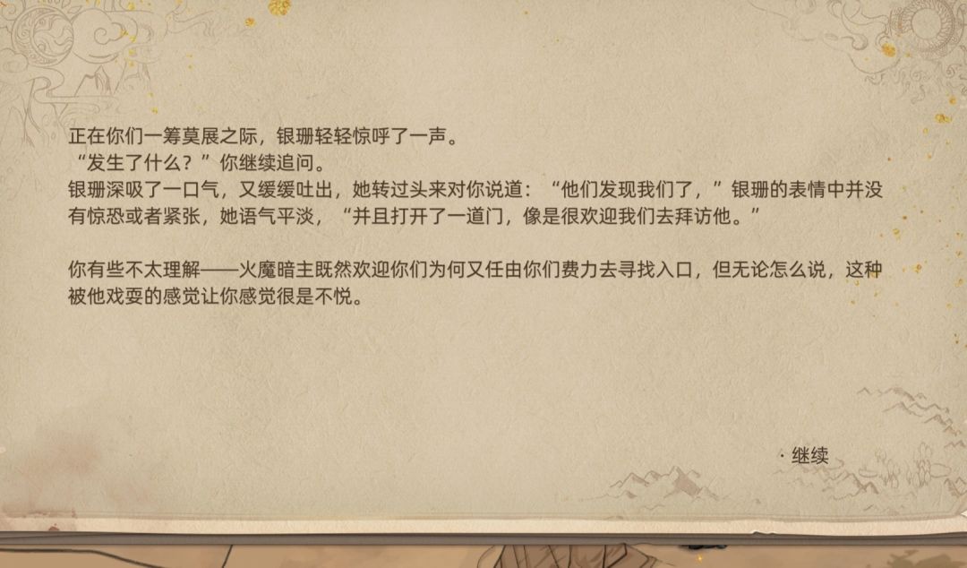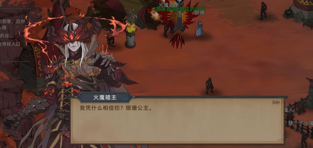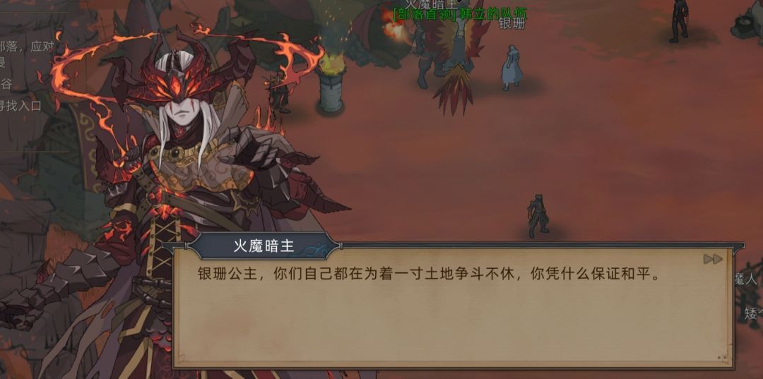 几经周折,男主和银珊再次找到了火魔暗主的所在地,进行谈判,这里的剧情我们能得出两点信息。