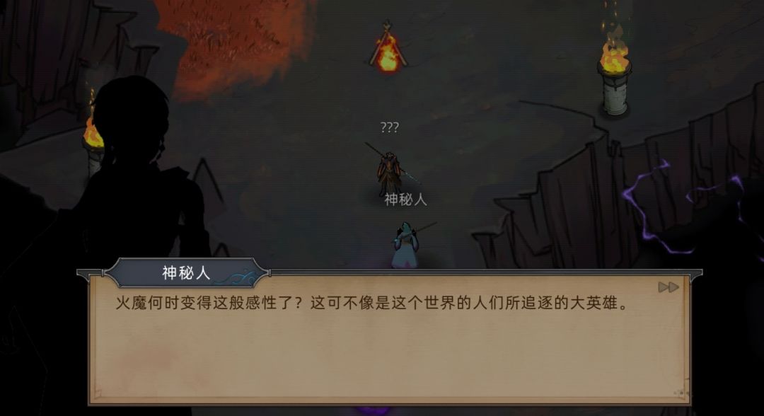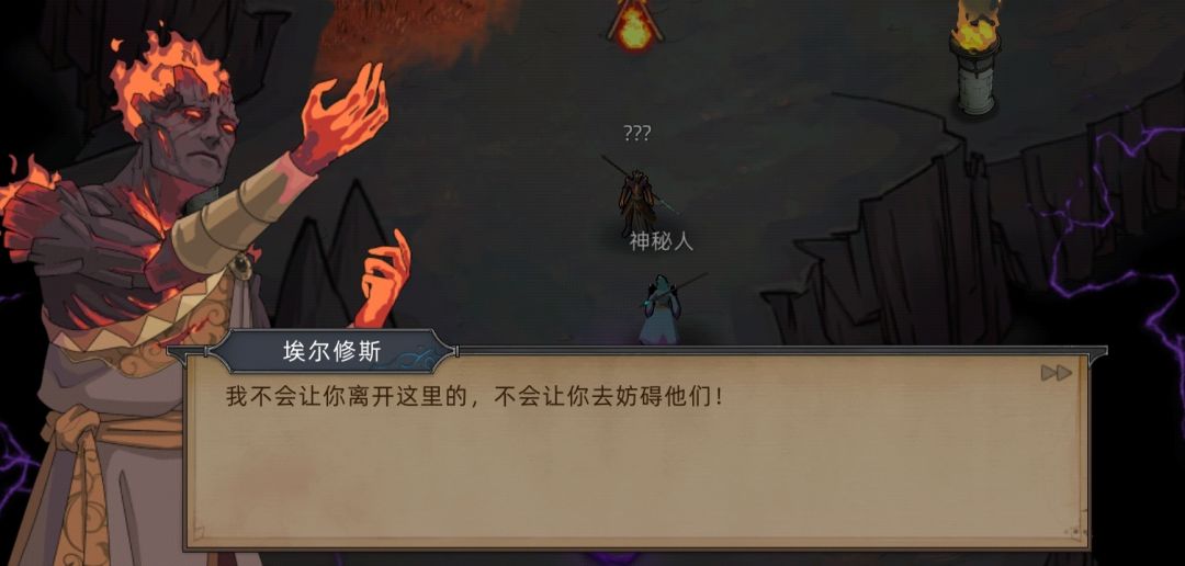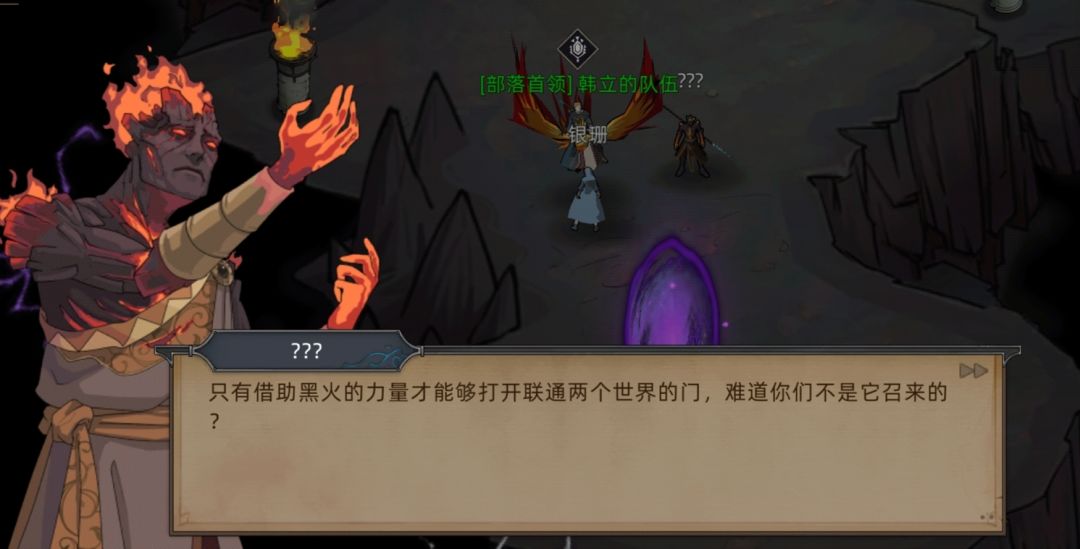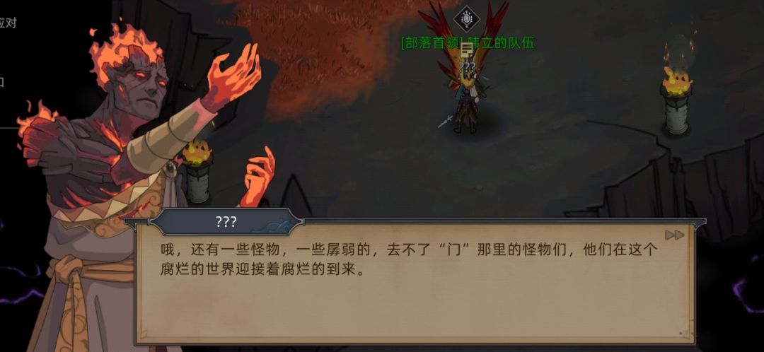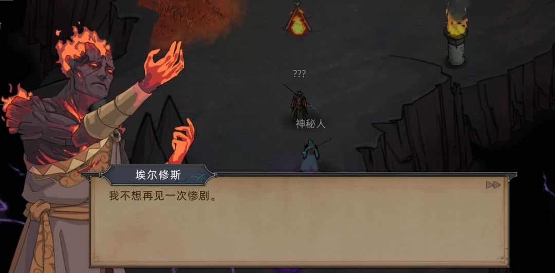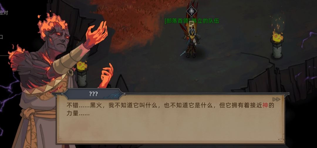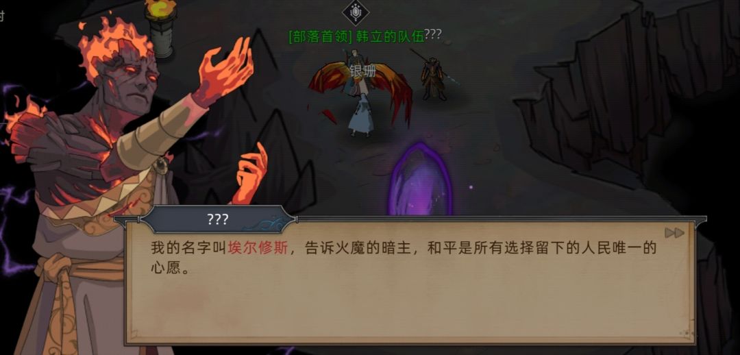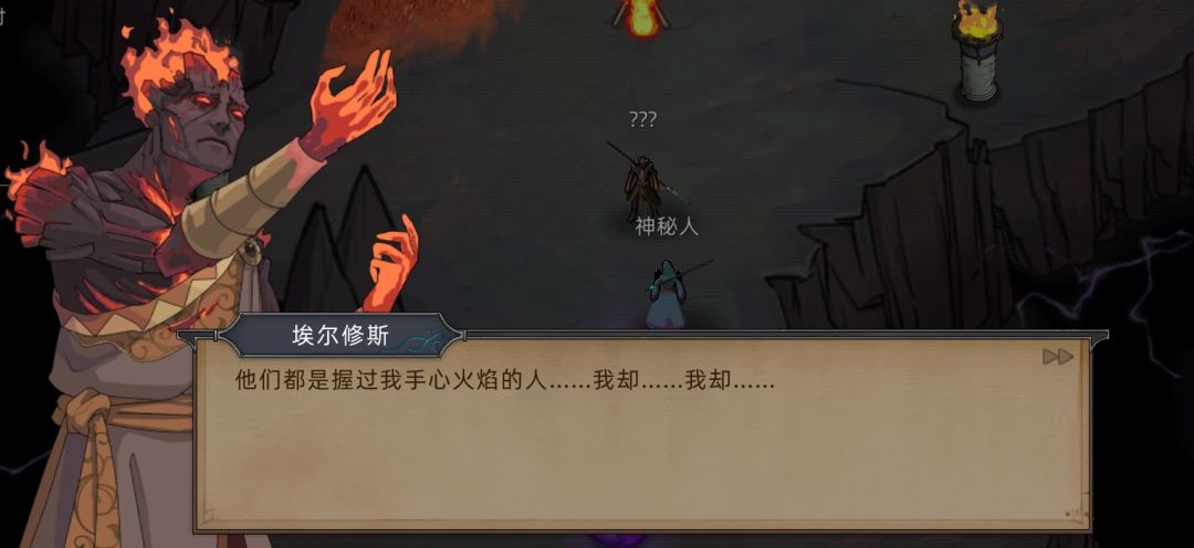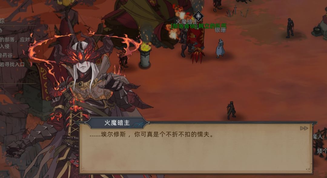 (PS:剧情在这里就暗示过,当时没仔细看,火魔暗主说的“他”根据后续剧情推测出是霍翎,同时埃尔修斯也发现了这一端倪,因为火魔领主是没有和黑火接触的。 )