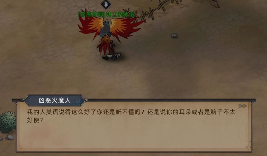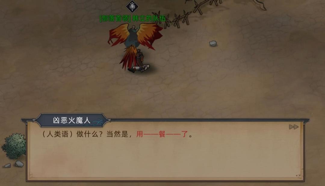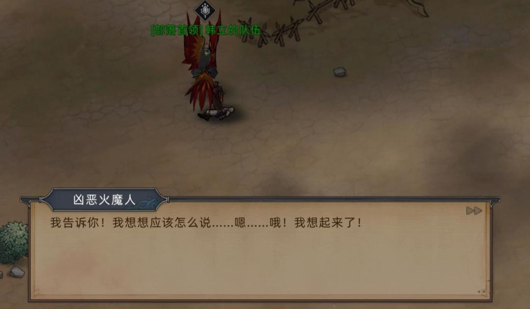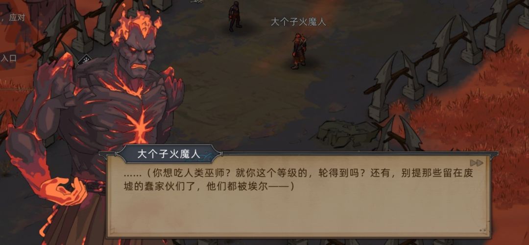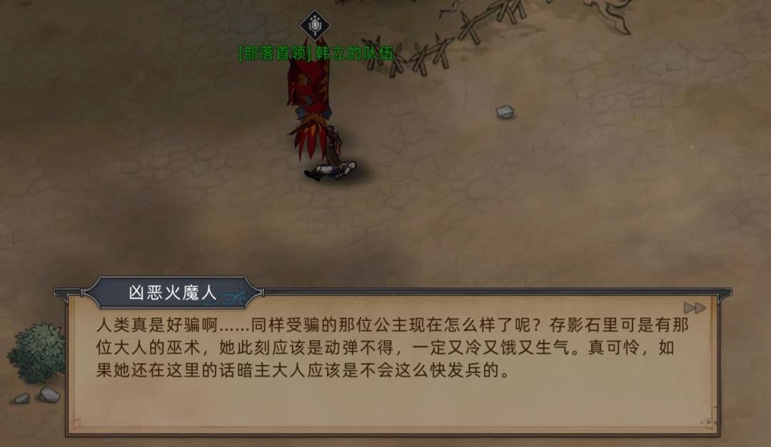 PS:注意两点,第一这个胆小的火魔人会说人话,目前已知仅有火魔暗主和埃尔修斯会人类语言,第二这个火魔人身份低微(不排除被抓壮丁强行送到门这边战斗的可能),根本无法接触到火魔暗主这样的领袖,所以只能是主和派的埃尔修斯教给他人类的语言。