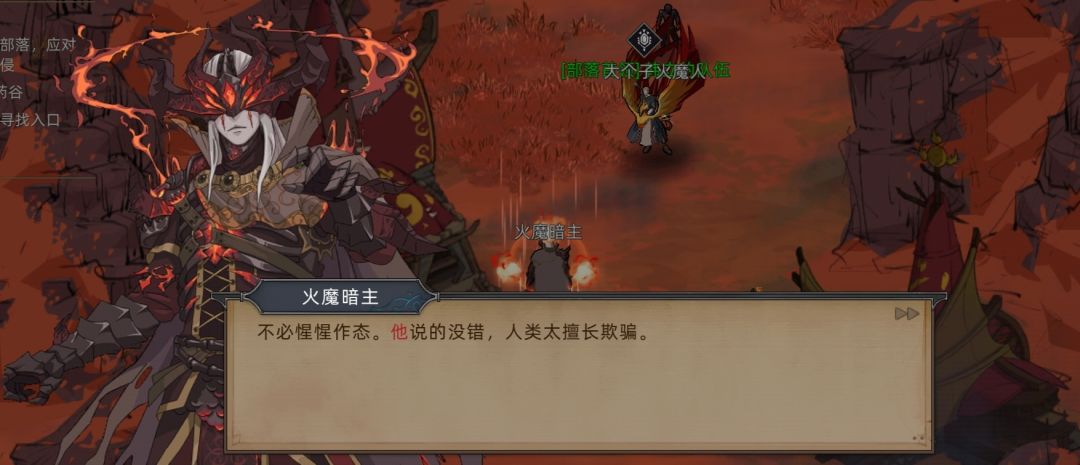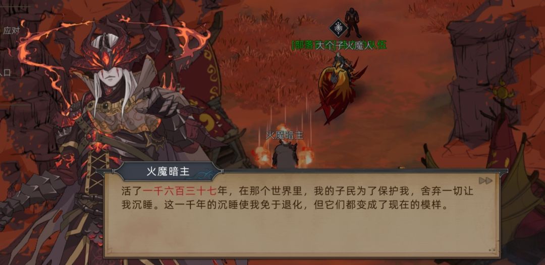 ②火魔人部族内明显分为两派,以火魔暗主为代表的主战派,以埃尔修斯为代表的主和派(虽然也是参战,但只是想谋求生存,并非刻意杀戮。)