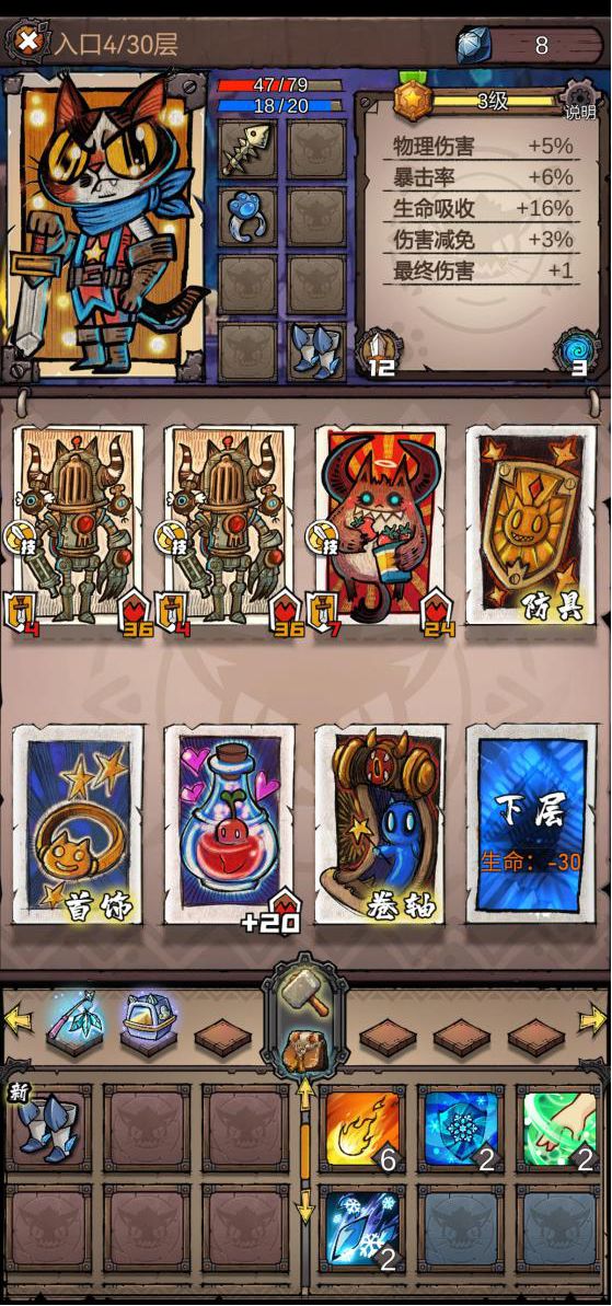 在这个奇妙的卡牌冒险世界,所有的一切都是猫猫头~请跟随猫猫头勇士,去打败变异的猫咪怪兽、猫眼巨人、狂野稻草猫猫……们吧!肉鸽玩法,极简战斗方式!