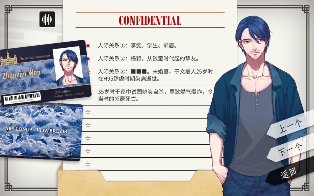 我们将文櫂人—遗书调成第二个结局,再翻开两人的资料卡,是这样的: