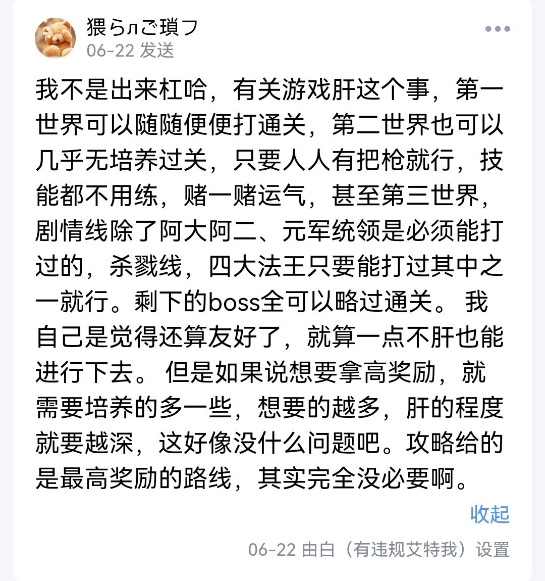 再者,关于游戏代肝这件事,群里有金主不想肝,找人帮忙也很合理不是吗,又不是无偿的,把代肝和脚本混为一谈可真有你的,你是准备把你的脚本也出个价?
