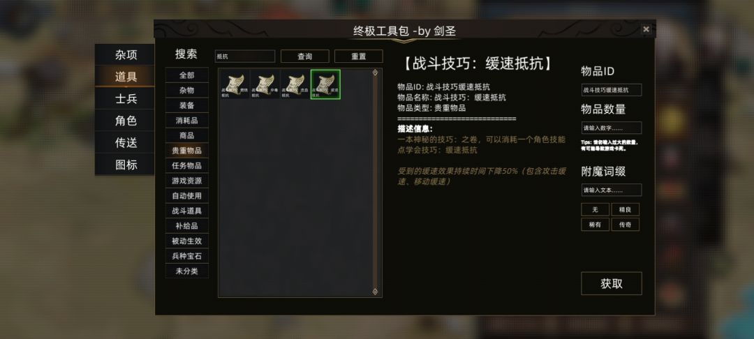 还可以给剑豪和汗卢达添加各类抵抗秘籍哦