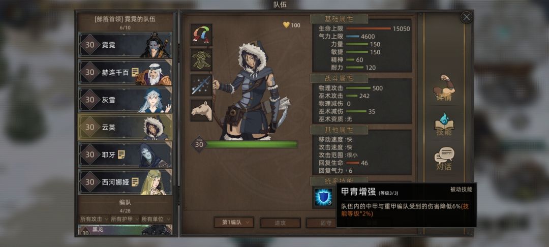 耶牙:统率技能提升9%的所有伤害减免,本身也是非常不错的战士队友