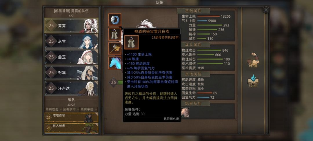 雪月白衣:冰谷秘境获得,附魔前缀为神盾的(最高提升25%所有减伤),自带受击隐身与50%巫术减伤。