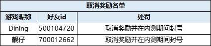 其中部分玩家涉嫌违规,取消奖励资格: