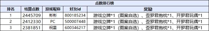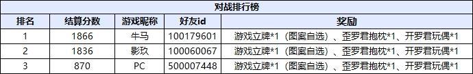 内测期间排行榜获奖名单公布