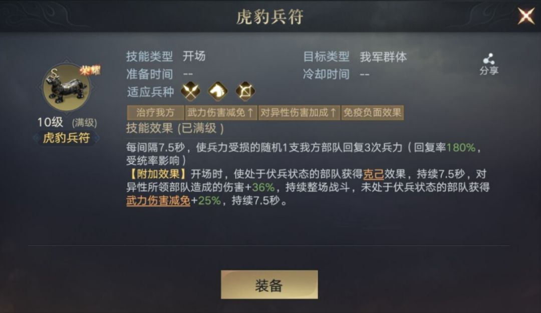 曹纯:虎豹铁铠(可替换为孙子兵法) 虎豹兵符