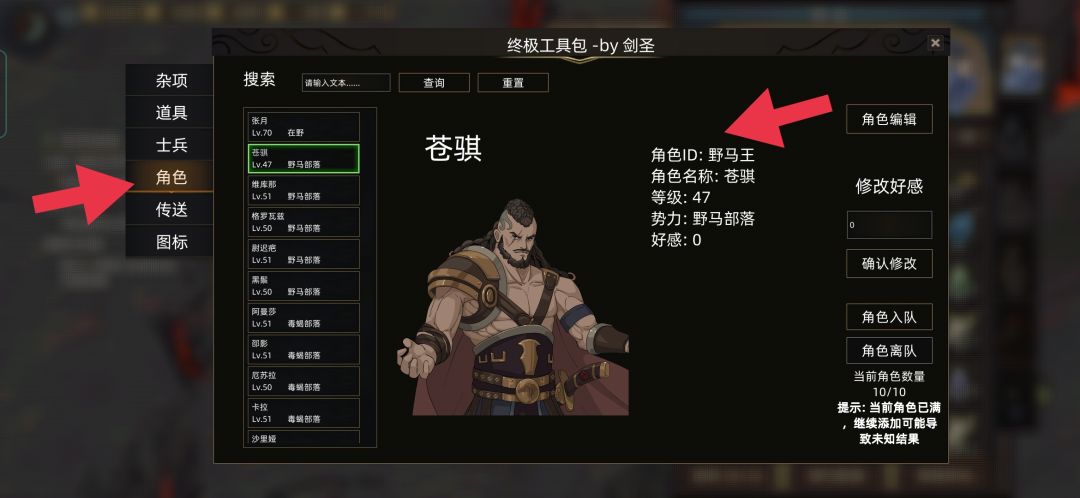⑥角色ID查看方式:终极工具包-角色-角色ID,角色ID与角色名称不一定相同,NPC学习技能需要使用角色ID