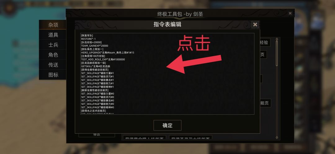 ②点击空白处,复制粘贴文末更多技能页ID里的所有指令,再点击确认,需要关闭终极工具包后重新打开,指令才能生效