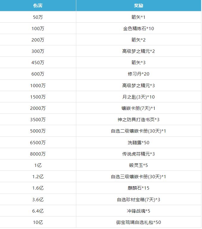 3 单局内全队伤害达到指定阶段有概率获得对应阶段奖励。