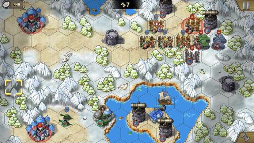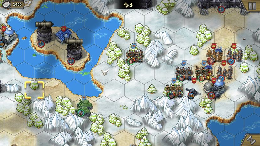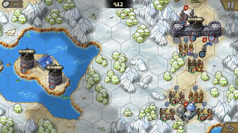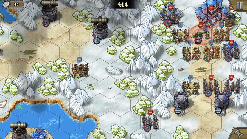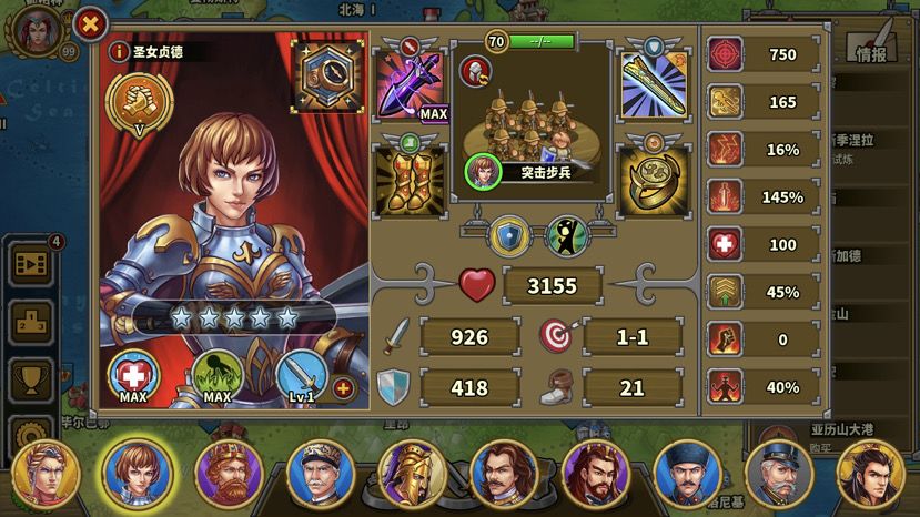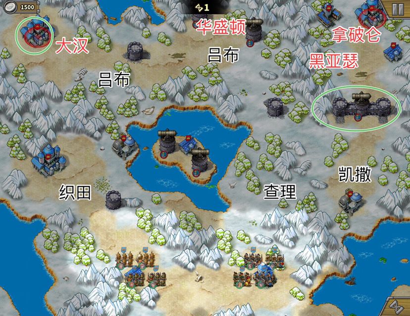 拿破仑有一万多血,杀死后,拆城堡前先清城堡相邻的小兵腾出输出位。十四回合时,我感觉左上城堡16回合有点悬,所以派神列去帮忙(你们应该没这个问题,我打米糊了以为这关全清全占,所以开局还造了小坦克占中岛费了钱导致造炮钱不够。凑数将也送了黑亚瑟,你们可以派残血的凑数将协助拆左边的城堡,这样更稳)