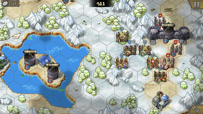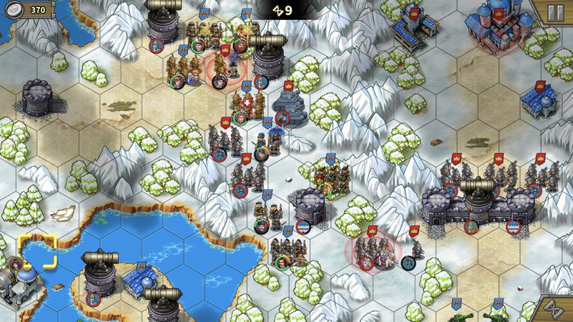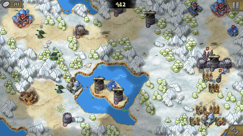 方案2. 先拆左上城堡,城墙叛变我方,用右下的工厂出炮轰墙里的弓兵,轰开一个位置后我方杀入。
