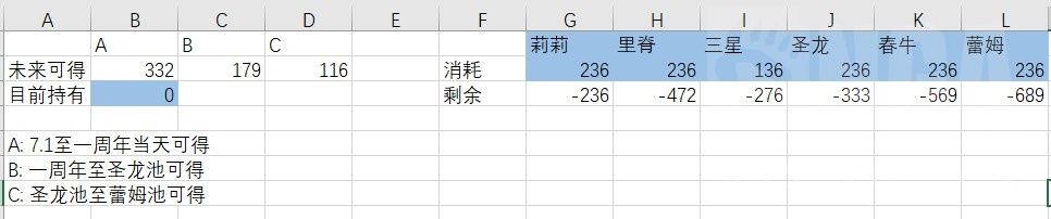 [攻略心得] 国服7.1至蕾姆池间抽卡余额简单规划计算器