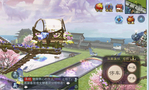 第一个上车的是司机 只有司机可以开启。在长按上车之后,你就可以在花车上体验一把自动观光家园的乐趣了!