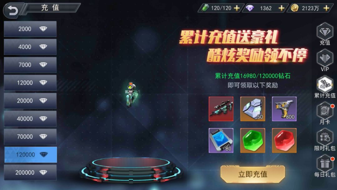活动内容:玩家充值钻石数额达到一定程度后可以领取对应的累计充值奖励。