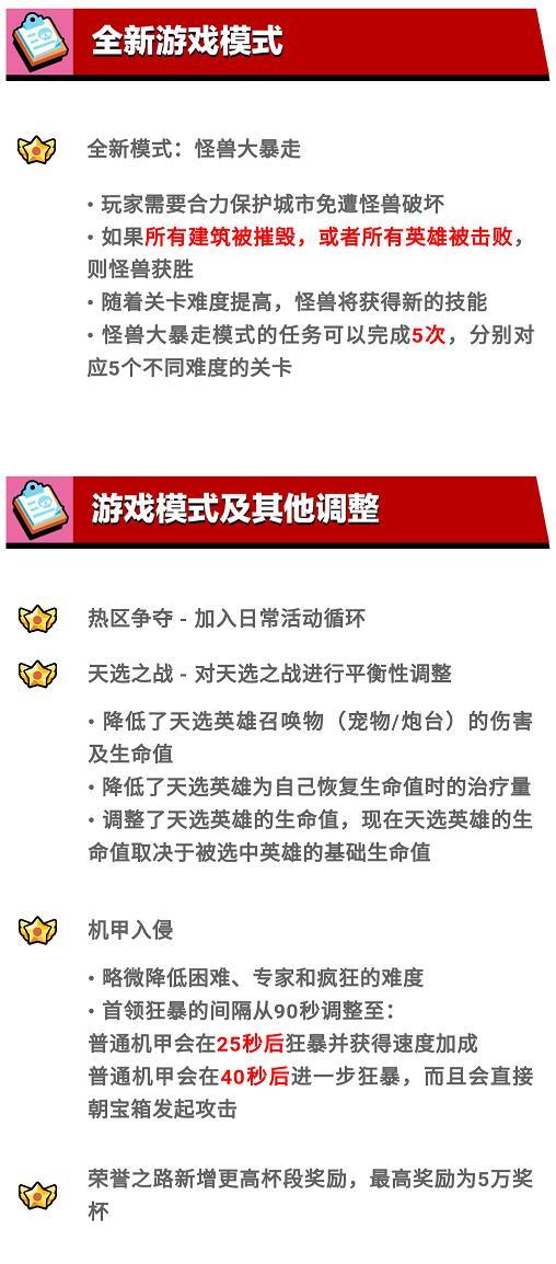 【新模式】全新的周末娱乐模式【怪兽大暴走】闪亮登场,看似有点像pve版的天选之战,但获胜不根据时间长短,而取决于所有建筑是否被摧毁。这让我们在战术安排上需要考虑更多,纵横周末的双枪柯尔特这次就不值得推荐了。