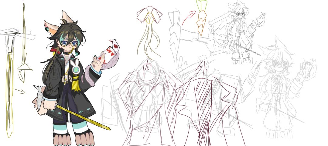 为了让兔哥和小狼看起来更有宿敌感,特意把攻击武器设计为同一个种类哈哈哈哈哈(看戏!)(所以阿斯现在想好为什么兔哥要设定为垂耳兔了嘛 (•̀ω•́)✧